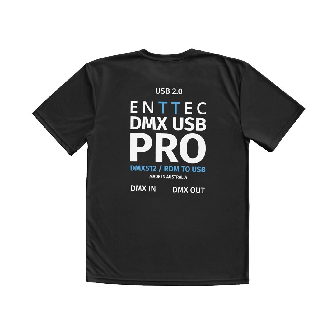 100% cotton – Sustainably grown and ethically harvested – official ENTTEC DMX USB PRO T-shirt.