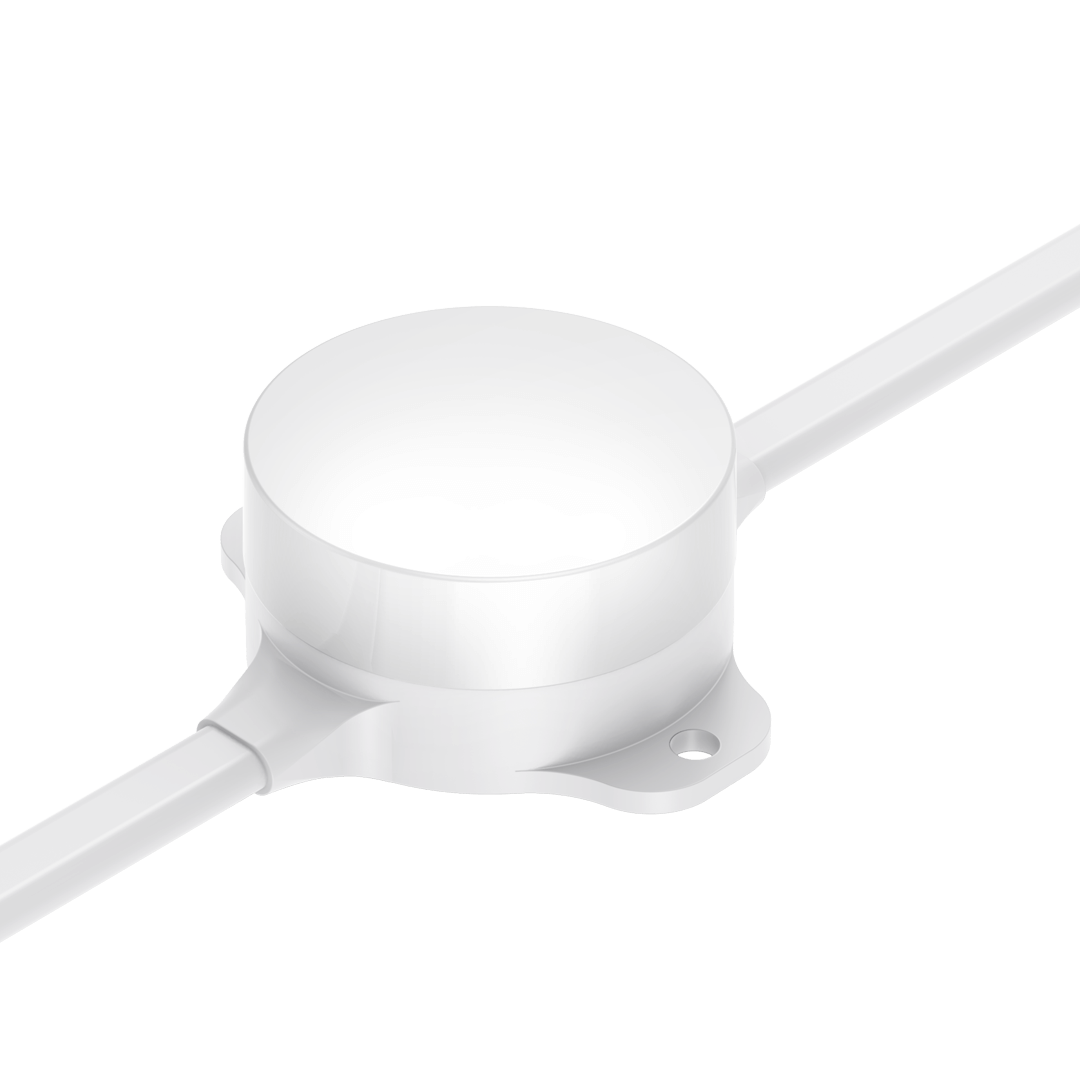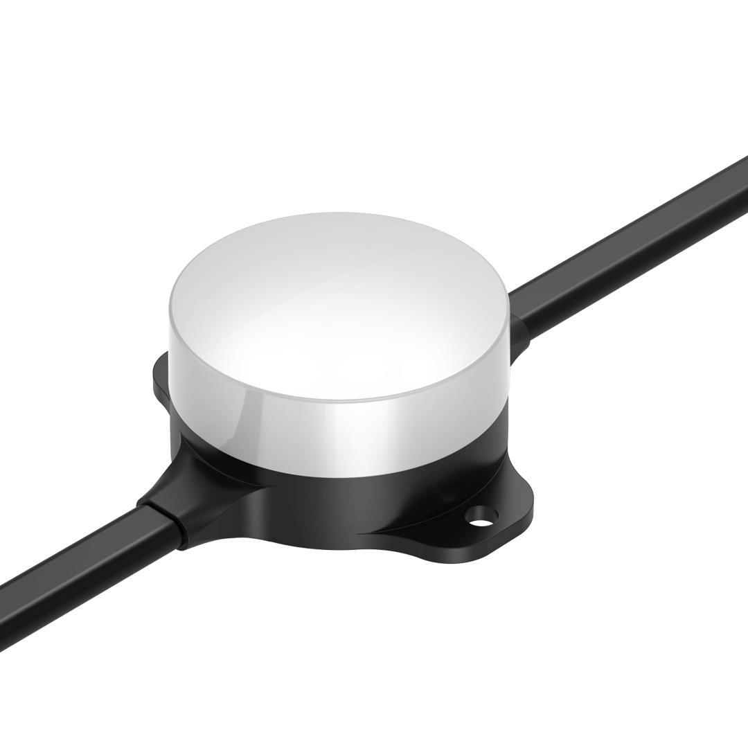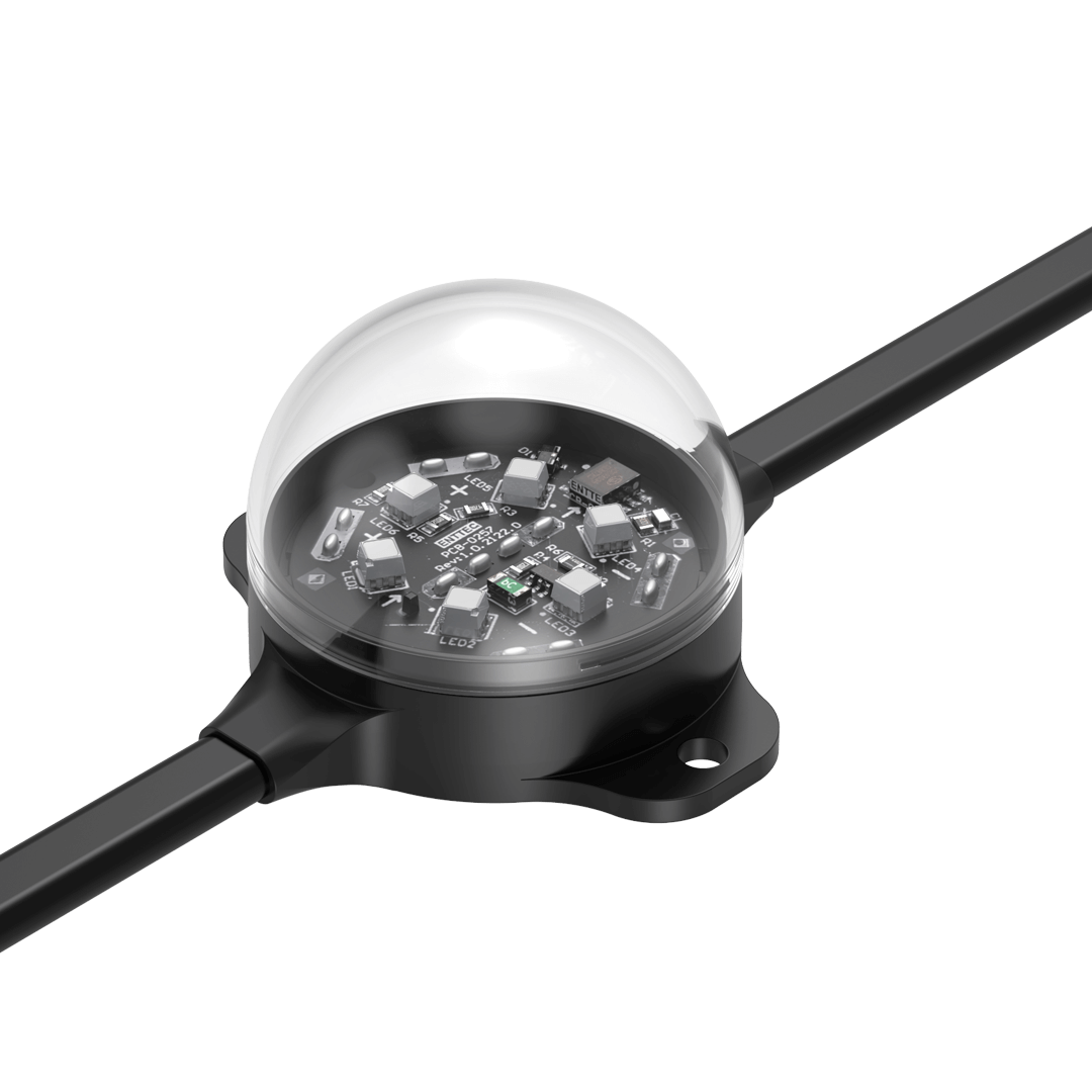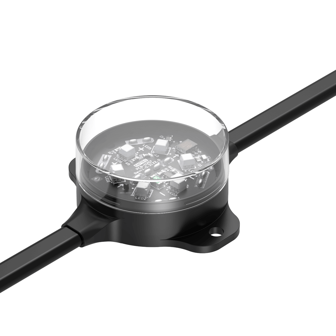 Flexible strings of ultra-bright, high-resolution 42mm RGB or RGBW LED dots — available in black or white finishes — with robust, injection-moulded cases for all-weather use.