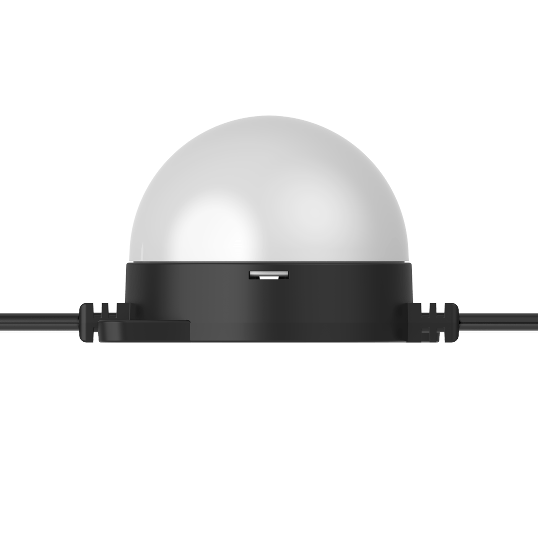Flexible strings of ultra-bright, high-resolution 55.5mm RGB or RGBW LED dots — available in black or white finishes — with robust, injection-moulded cases for all-weather use.