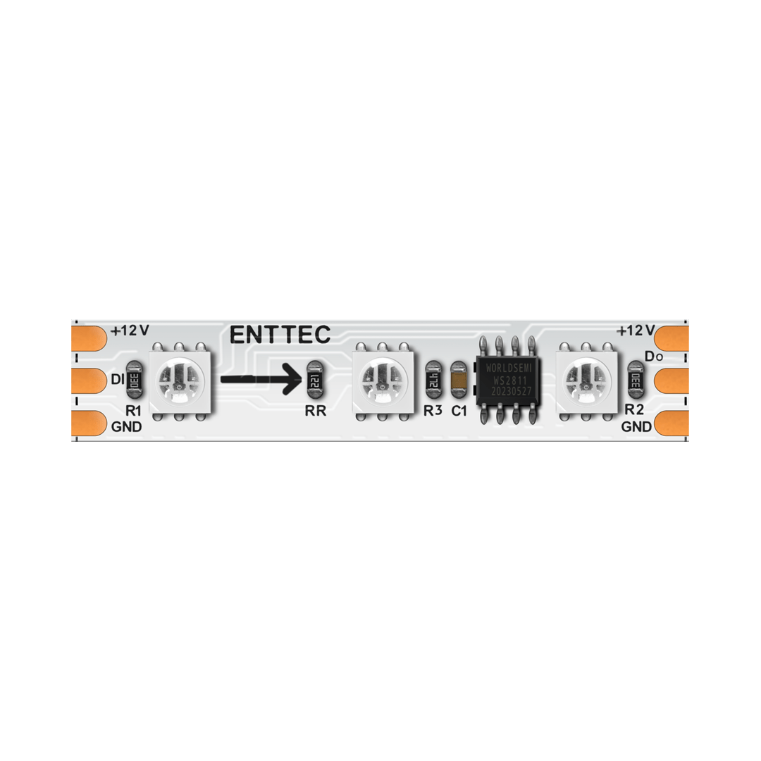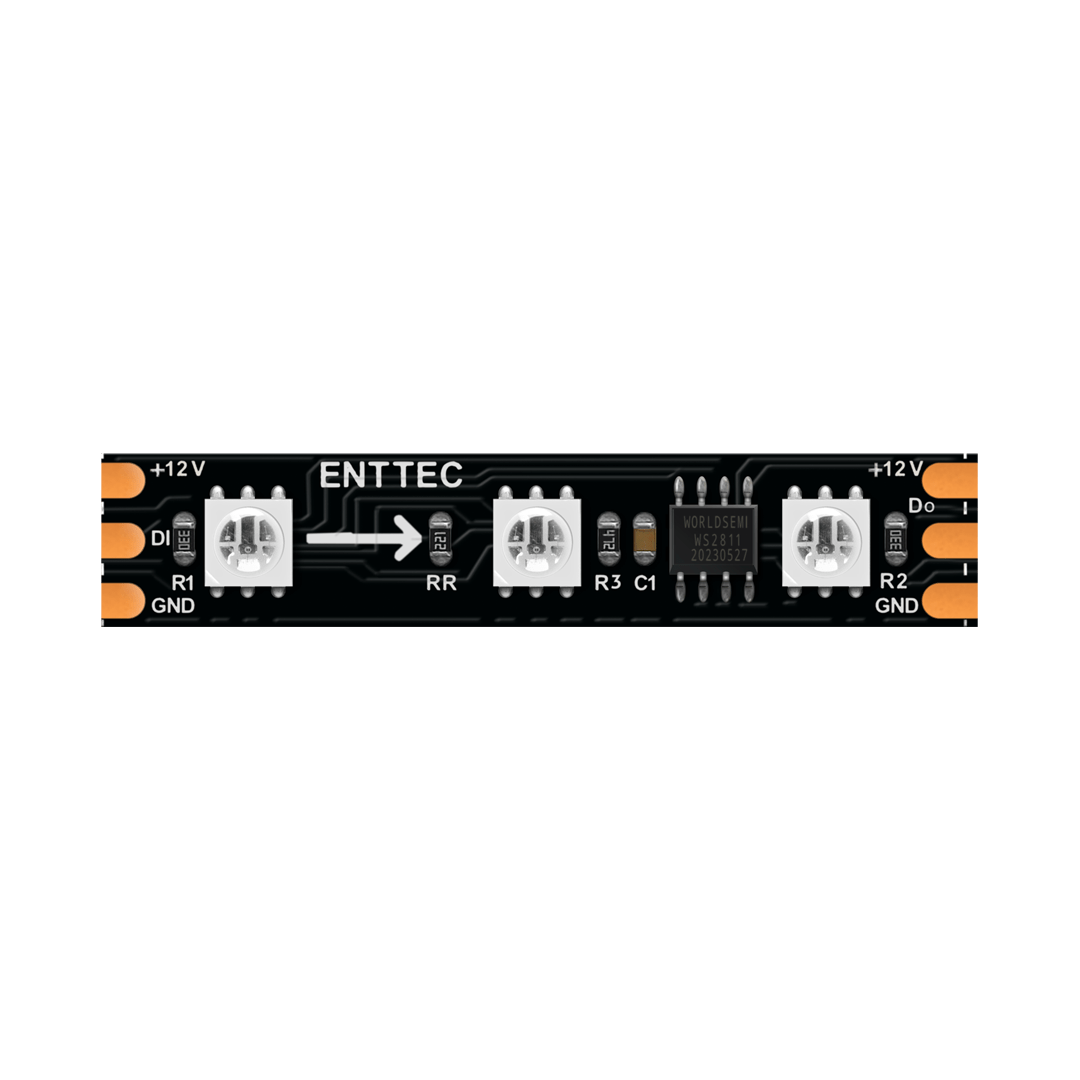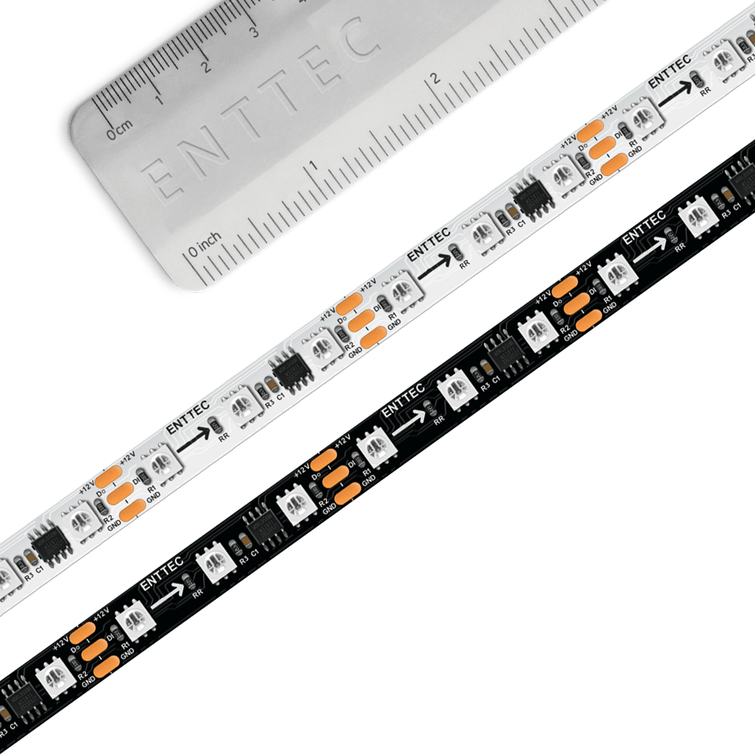 ENTTEC ‘s 8PXB60-RGB-12V series are 12V, 60-LED-per-metre, addressable RGB LED pixel strips designed for long-range professional architectural and entertainment installations, achieving soft pastels or saturated colours on a large scale.