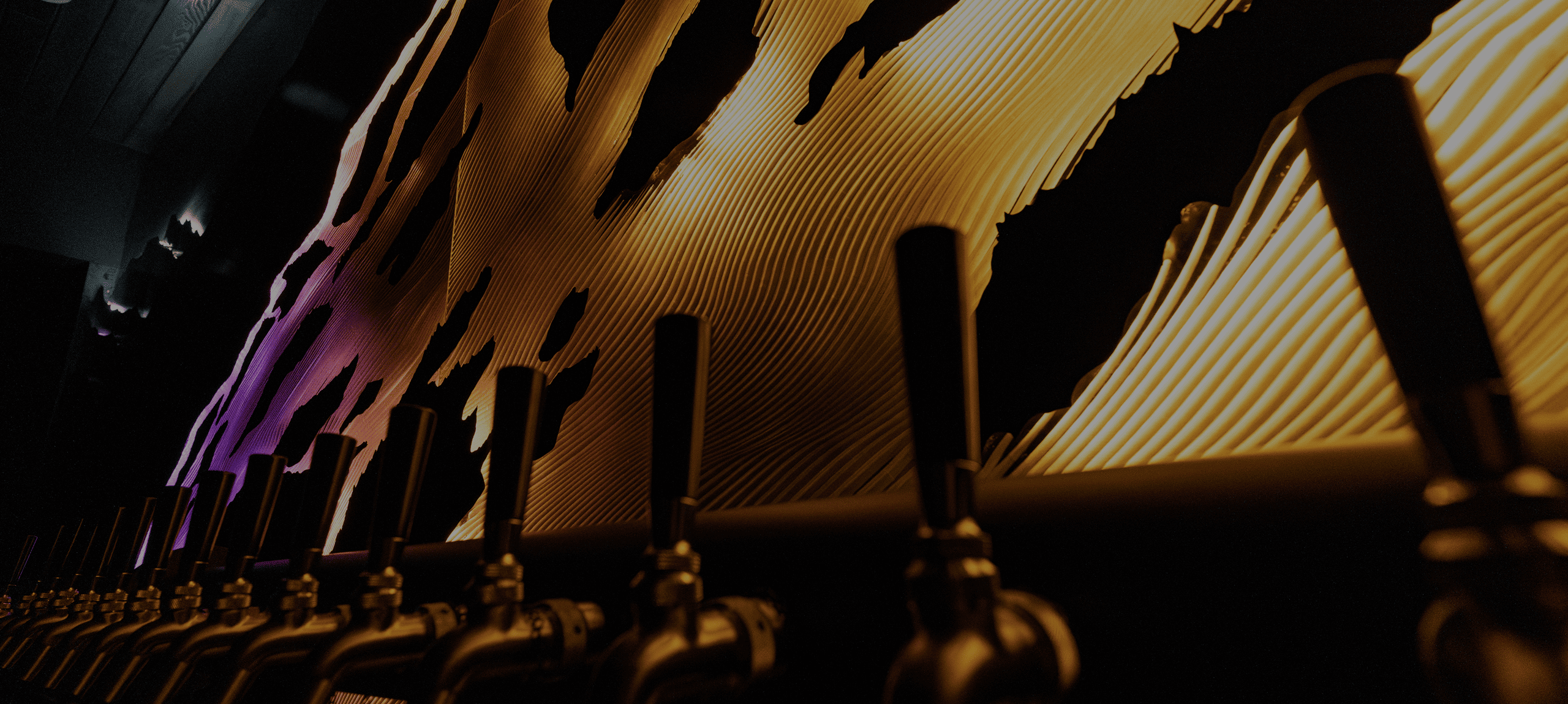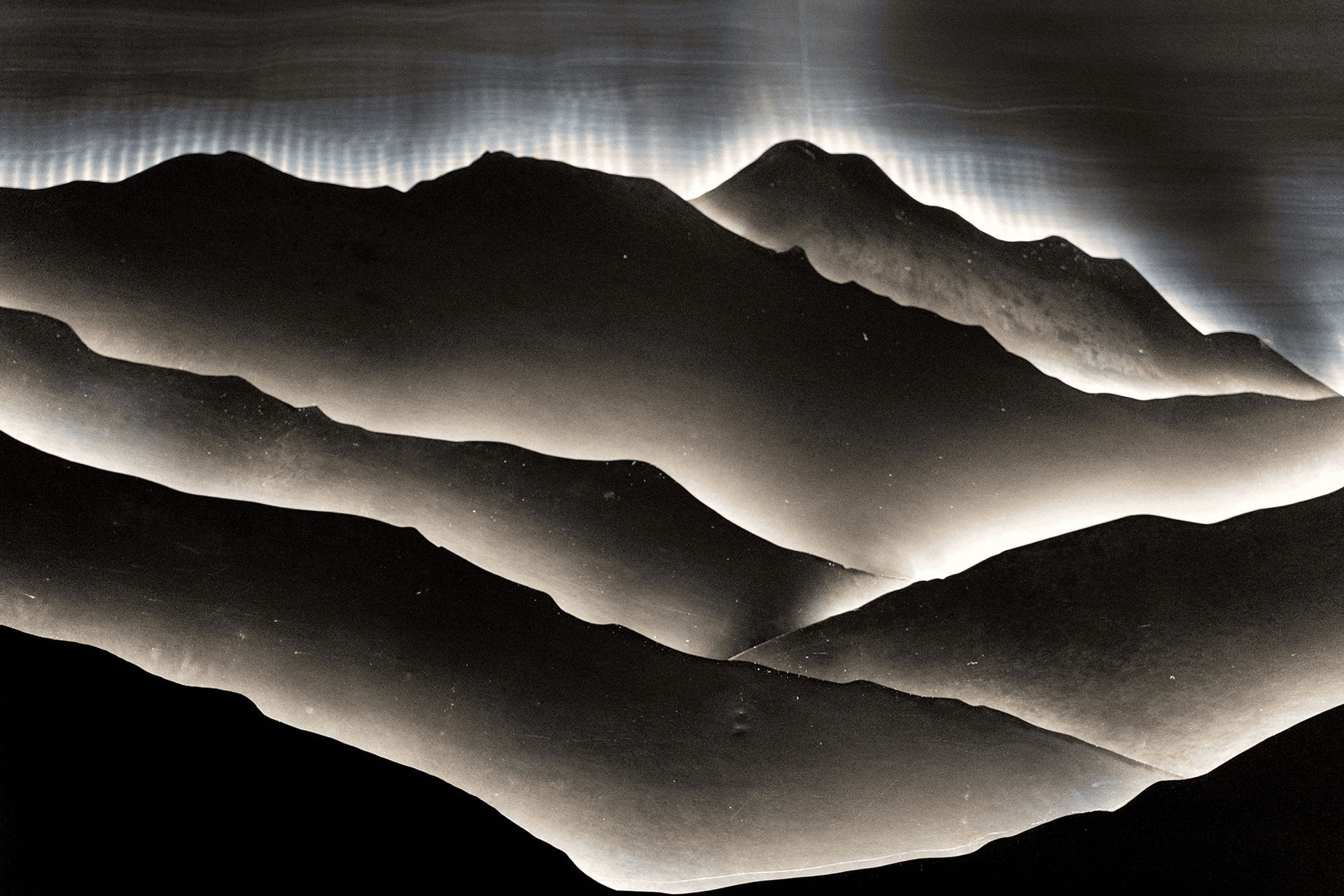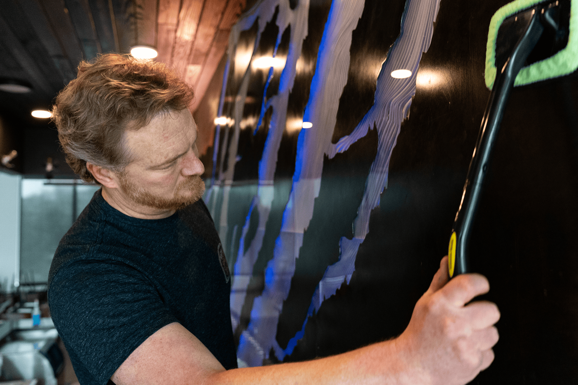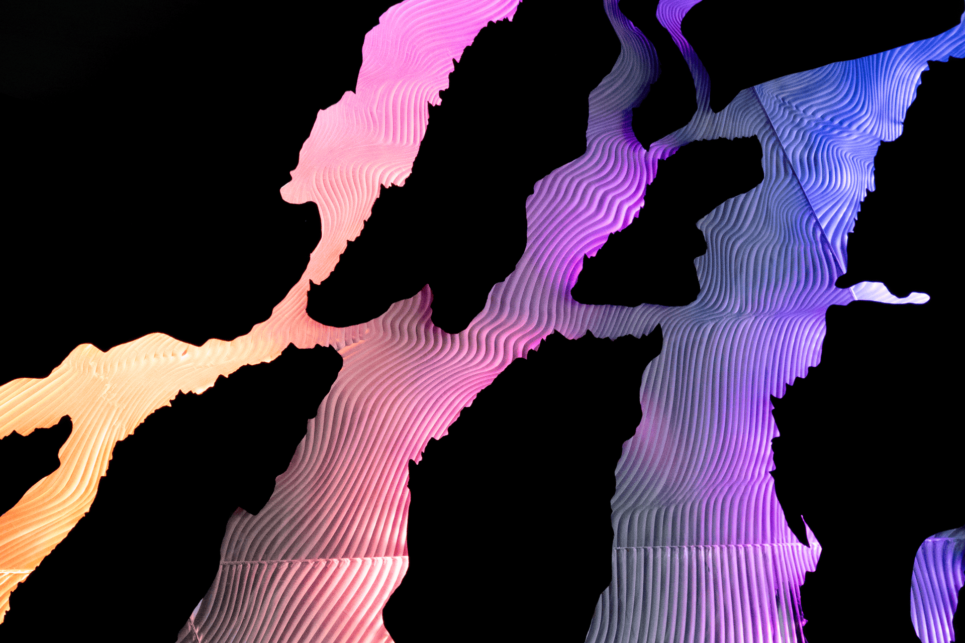 Bland Hoke, known for his bespoke multidisciplinary art installations and sculptures, was commissioned by Snow King Mountain to create the main art piece for their new summit building. During the process of designing the art piece to transform the restaurant’s main wall behind the bar into an artistic topographical design, Hoke decided to bring on Sanford who is known for his expertise in lighting.